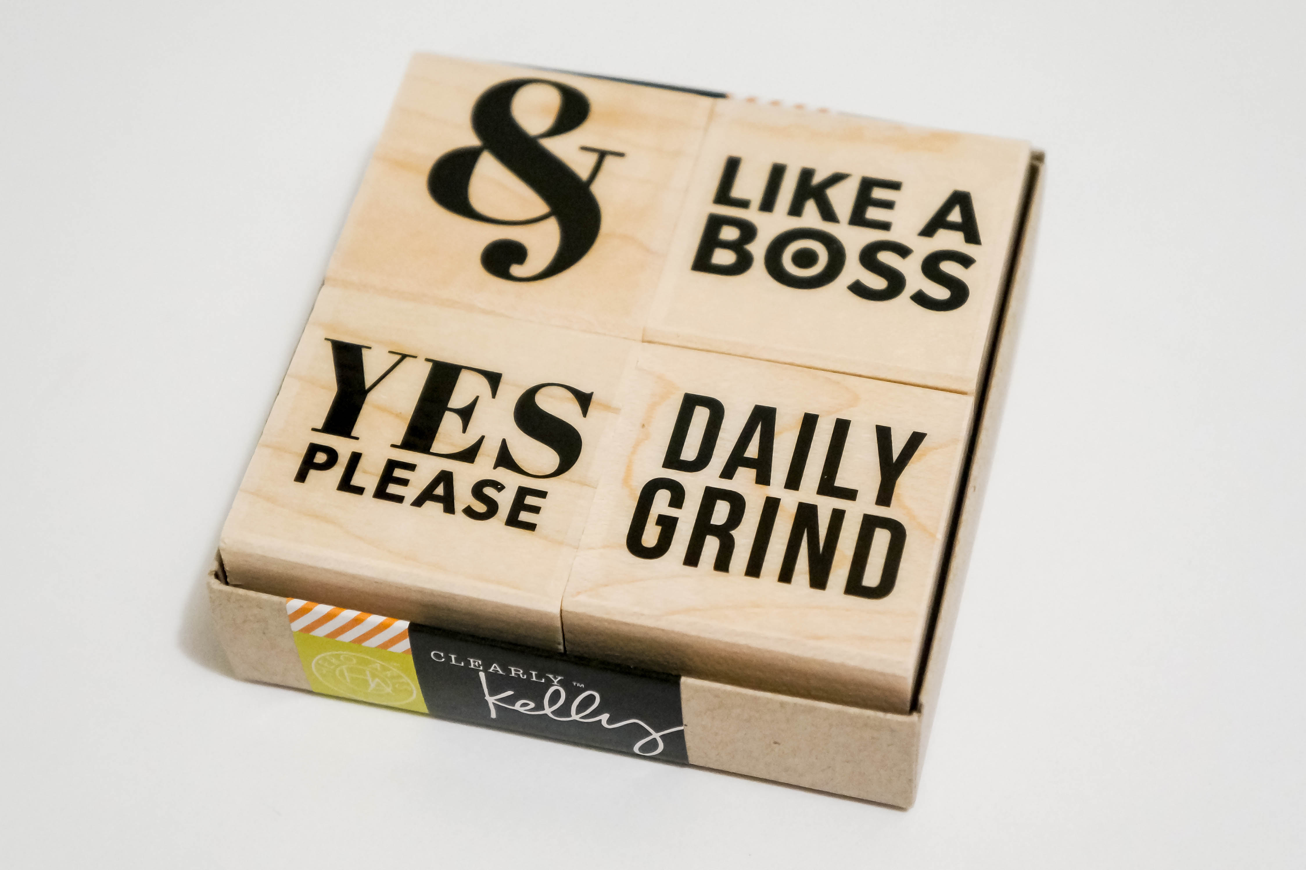 I love me a good small quote and especially now that I’m getting into Project Life. Then you mix it up with a wood mounted stamp? Even better. This stamp set is perfect to add that extra sass to your PL layouts! Now if only my boss would let me use these to stamp office documents… I just processed your invoice, like a boss!